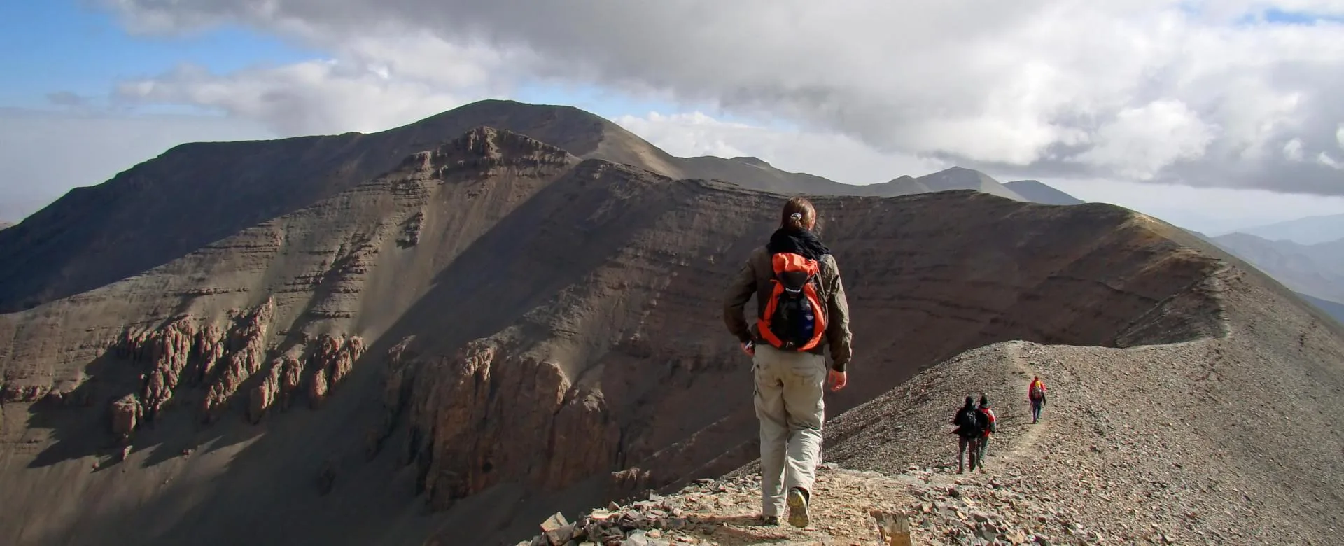 Once we reach the summit, we will descend over steep, rocky terrain toward the Northeast and spend the night in the Oulillimt River Valley below.